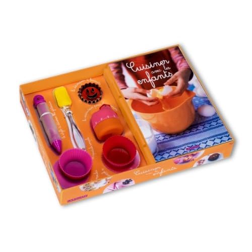 Wraps aux petits légumes, tartelettes salées, smileys fourrés à la confiture, grizzlys tout chocolat, cupcakes de princesses ou de pirates, voici 30 recettes à réaliser avec les enfants : faciles à réaliser, elles seront à leurs goûts, tout en leur faisant découvrir des saveurs et en s’amusant sur la présentation !Ce coffret comprend :- Un découpoir à biscuits en forme de smiley.- Un minuteur pour la cuisson- 4 moules à gâteaux- Une spatule souple- Un stylo à décorer les gâteaux- Un livre de 80 pages Le livre propose, en plus des 30 recettes, des pages pratiques dans lesquelles l’enfant pourra découvrir le vocabulaire culinaire de base, trouver des modèles d’emporte-pièces, écrire ses propres recettes et découvrir son diplôme de cuisinier en herbe.