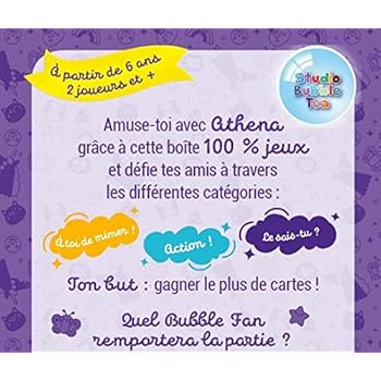 Amuse-toi avec Athena dans cette boîte 100 % jeux ! Retrouve tout l'univers de Studio Bubble Tea grâce aux 50 cartes de jeu ! Défie tes amis à travers les différentes catégories : mimes, actions et questions. Quel Bubble Fan remportera la partie ?